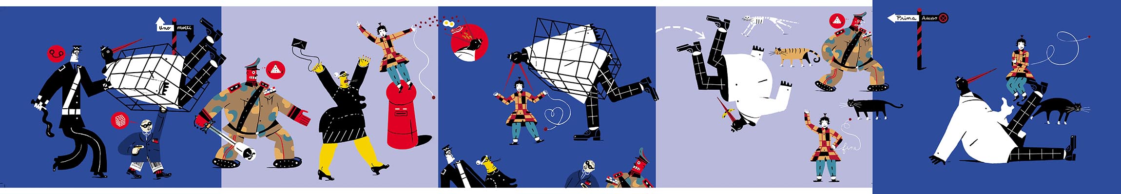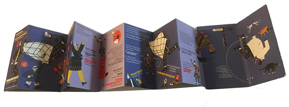 Bestiarara (Strangebeast) is the title of the only children’s book whose text I have written. It was published by the italian Orecchio Acerbo in 2003. It’s a leporello that tells a very simple story about a strange being misunderstood by its quite douche neighbors, and about its friend, a girl with a normal intelligence level.
