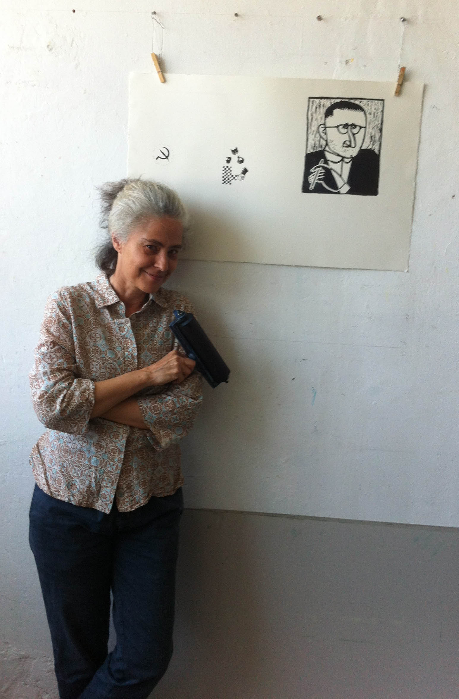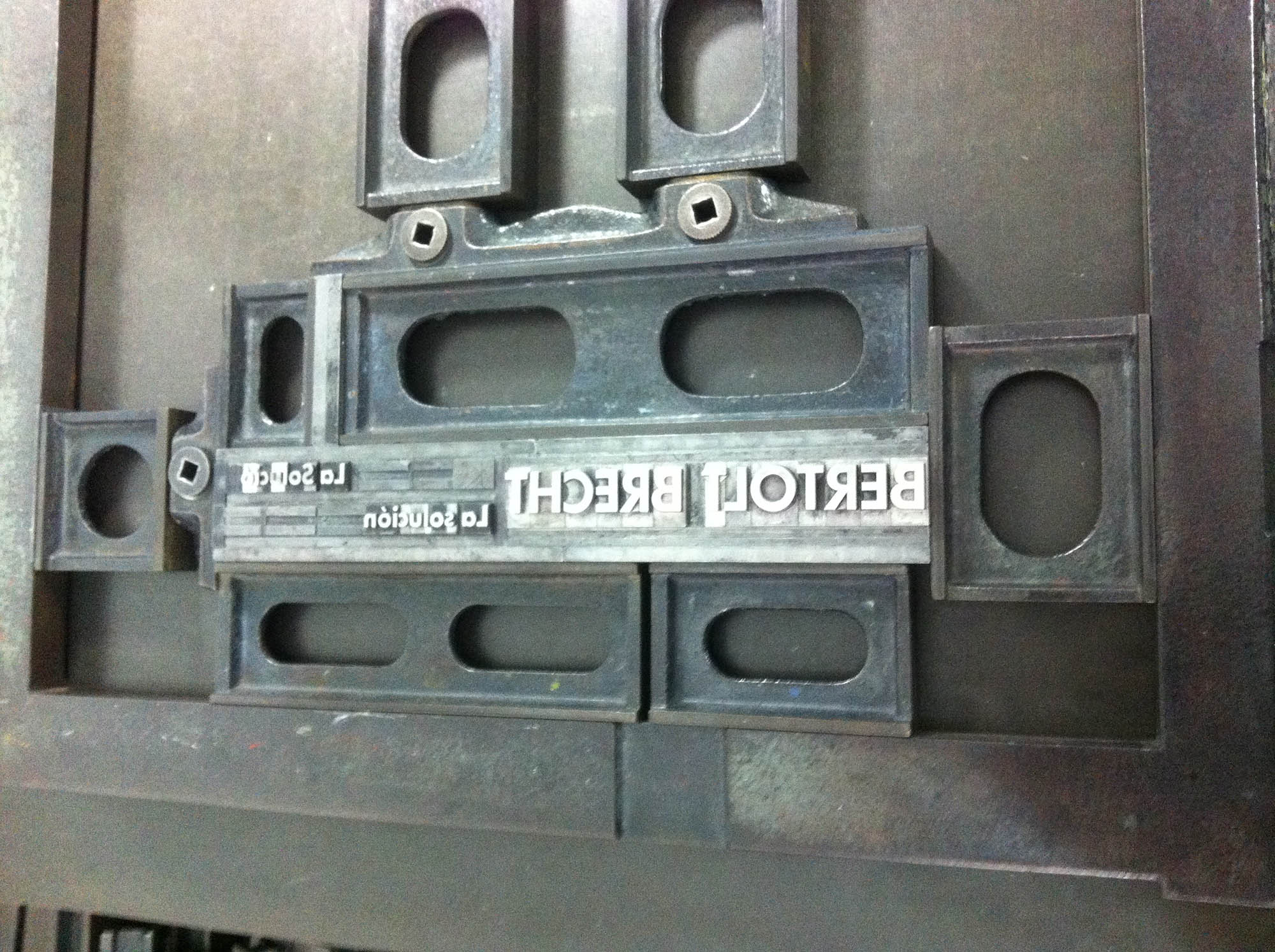 This Bertolt Brecht’s text was the beginning of a self publishing project, which pays tribute to my favorite classic writers, that I started in 2006. It’s a paper sheet printed double-sided with movable type for the texts, and with manual offset press for the images. The arrangement of the text and the printing was made by Ferran Fandos (photo 2) at the association-printing house L’Automàtica in Barcelona and the offset printing was made by Marta Marugan (photo 5).