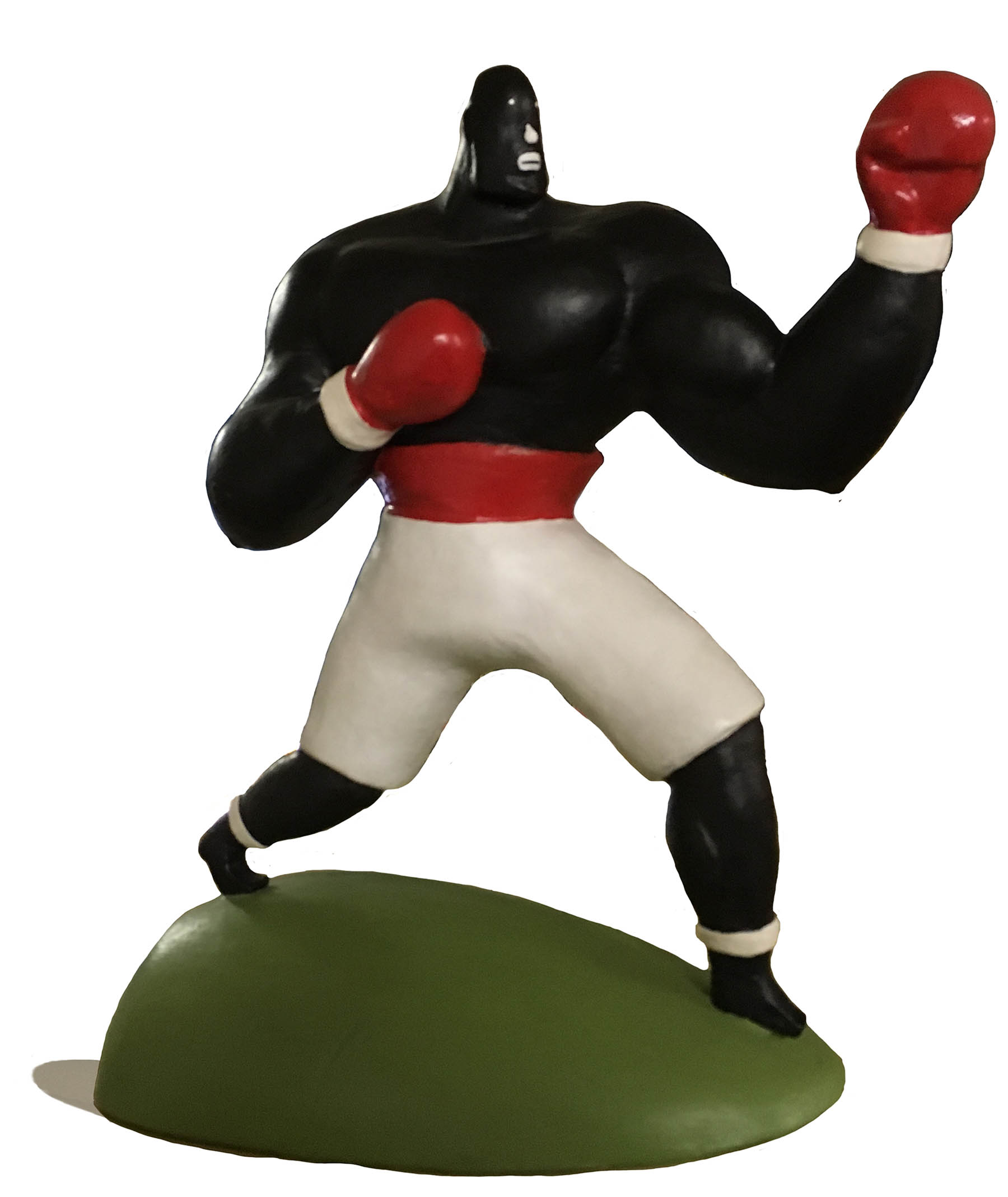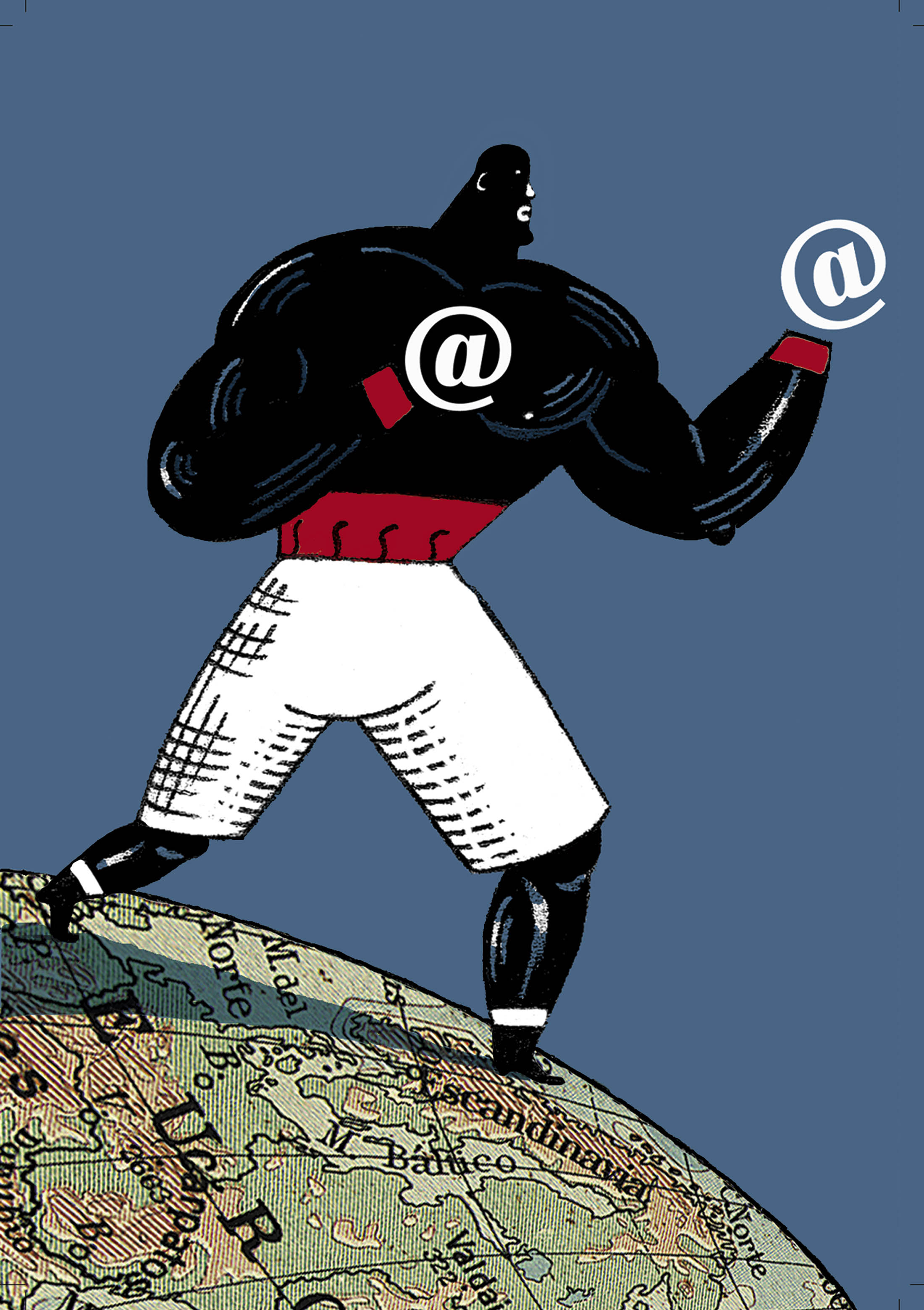 In 2003, the newspaper El Mundo comissioned me an image for a series of postcards about networks and new technologies. The project never came out, but the electronic boxer fought his fights and he even got to take shape in 2007 thanks to the sculpture work of Armand González who besides is an excellent illustrator.