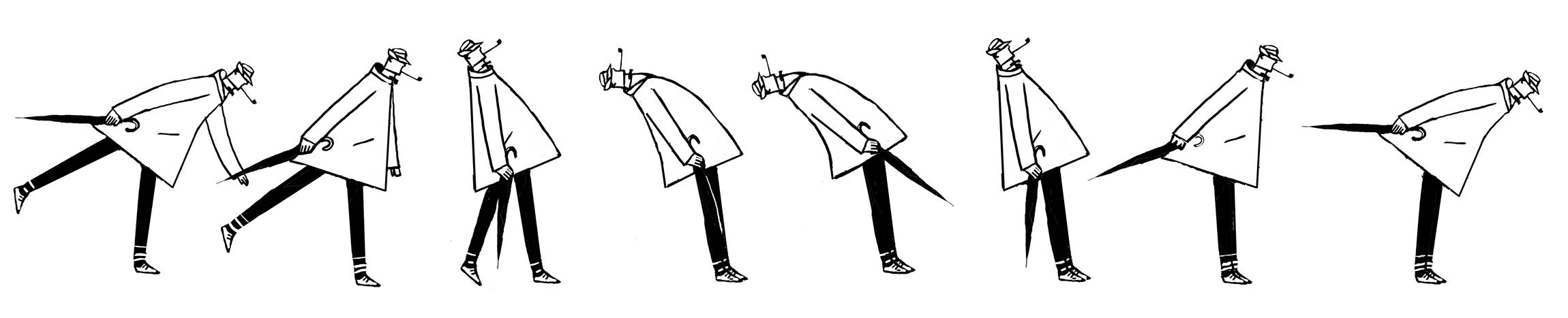 The defunct broadcast platform DIGITAL + commissioned to some illustrators the creation of animation pieces based on classic movies in order to be used as bumpers in its movie channels. The job consisted of creating the story and designing the characters and backgrounds, but I also wanted to take charge of the animation. With the help of the awesome animator Dirk Van de Vondel, I produced short films that paid tribute to some of my favorite movies and filmmakers. One of these is dedicated to the great Jacques Tati and his alter ego Mr. Hulot.